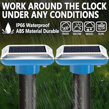 هر واحد تا ۶۵۰ متر مربع را پوشش میدهد و برای فضاهای بزرگتر میتوانید از پک ۴ عددی استفاده کنید. این دافع خال و گافر برای باغ، مزرعه، گلخانه، چمن و حیاط کاملاً مناسب است و هیچ آسیبی به انسان، حیوانات خانگی و گیاهان نمیرساند (بدون مواد شیمیایی، بو یا تشعشع).