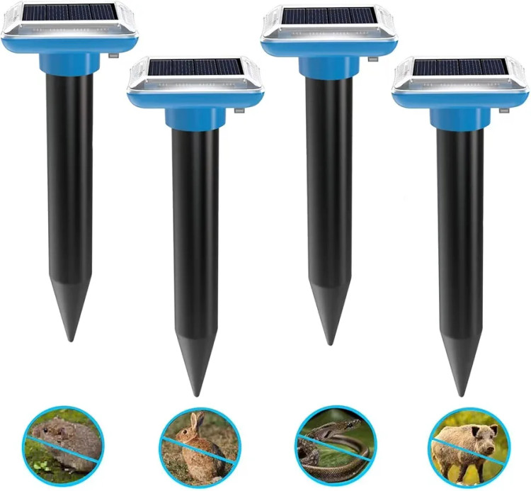 دفعکننده مول و گافر خورشیدی ۴ عددی – دستگاه دافع خال، گافر و جوندگان با فناوری اولتراسونیک و ارتعاشی