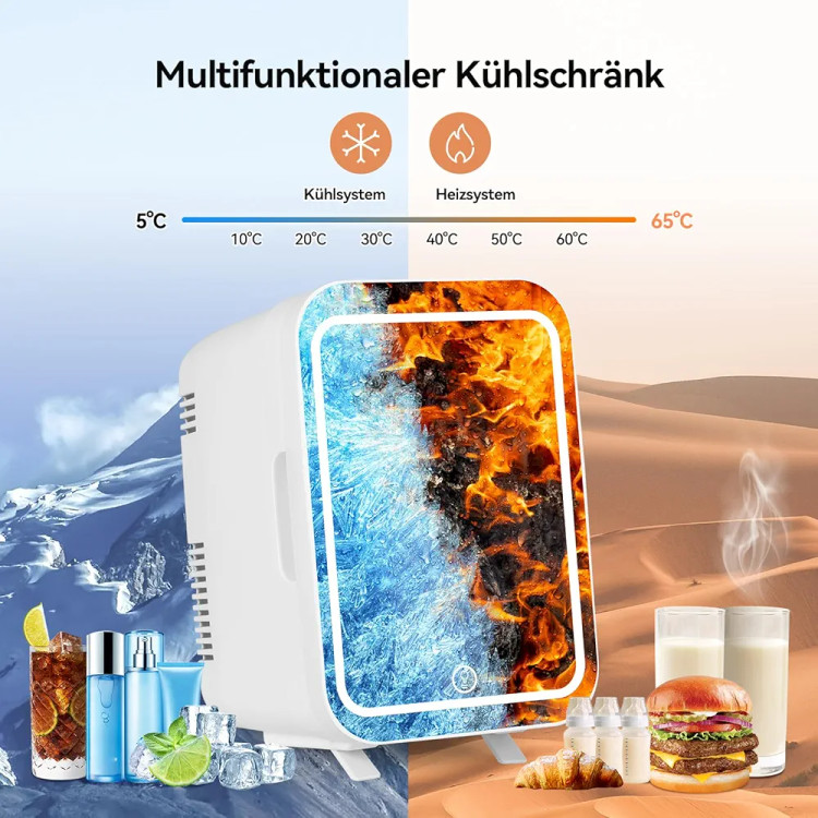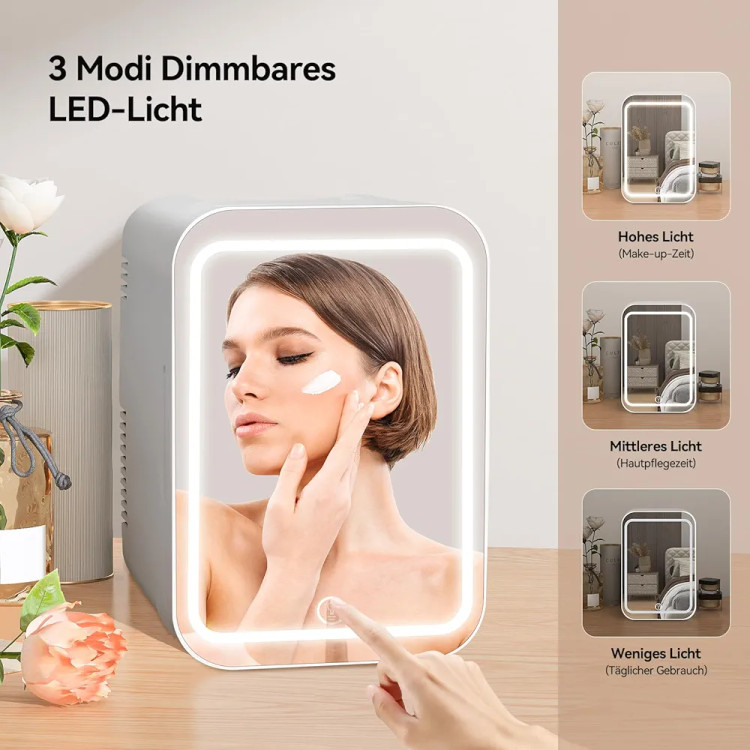 با ظرفیت ۴ لیتر، این مینی فرجیدر زیبایی فضای کافی برای نگهداری چندین بطری سرم، کرم، پچ زیر چشم و حتی نوشیدنیهای کوچک یا میانوعده فراهم میآورد. آینه LED روشن با سه سطح روشنایی قابل تنظیم، این محصول را به یک آینه آرایشی کاربردی تبدیل کرده که همزمان با خنک کردن محصولات، نور مناسبی برای اعمال makeup فراهم میکند.