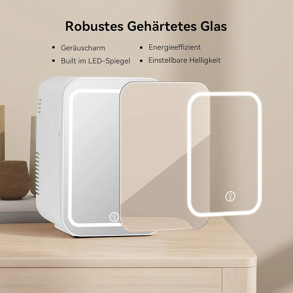 با ظرفیت ۴ لیتر، این مینی فرجیدر زیبایی فضای کافی برای نگهداری چندین بطری سرم، کرم، پچ زیر چشم و حتی نوشیدنیهای کوچک یا میانوعده فراهم میآورد. آینه LED روشن با سه سطح روشنایی قابل تنظیم، این محصول را به یک آینه آرایشی کاربردی تبدیل کرده که همزمان با خنک کردن محصولات، نور مناسبی برای اعمال makeup فراهم میکند.