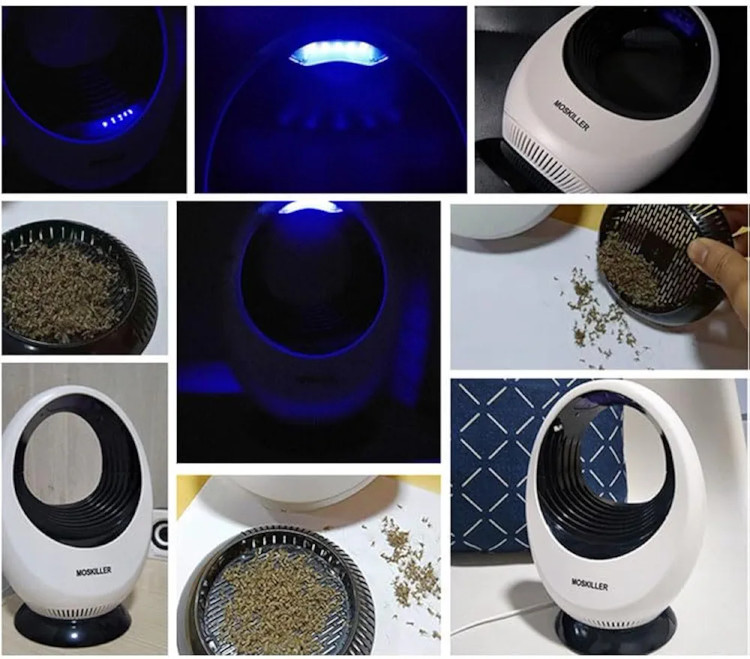 با نور UV LED پشهها را جذب کرده و سپس با فن مکش قدرتمند آنها را به داخل محفظه میکشد. حشرات بدون شوک الکتریکی خشک شده و از بین میروند.