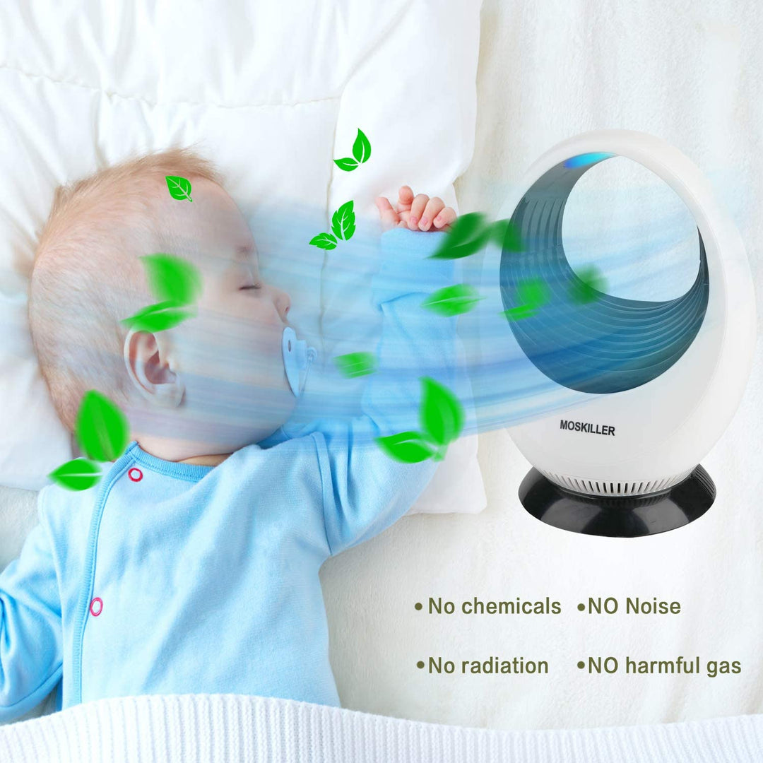 با نور UV LED پشهها را جذب کرده و سپس با فن مکش قدرتمند آنها را به داخل محفظه میکشد. حشرات بدون شوک الکتریکی خشک شده و از بین میروند.