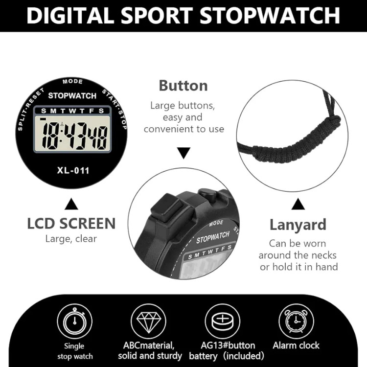 این تایمر ورزشی از مواد ABS مقاوم و سبک ساخته شده و میتواند در انواع فعالیتهای ورزشی مثل دویدن، شنا، فوتبال، بسکتبال و تمرینهای تناوبی بهراحتی استفاده شود. طراحی ساده با دکمههای کاربرپسند آن را برای همه سنین قابل استفاده کرده و نیازی به دانش فنی پیچیده ندارد. بسته شامل باتری AG13 است که هنگام خرید درون دستگاه قرار دارد و نیاز به تهیه جداگانه ندارد.