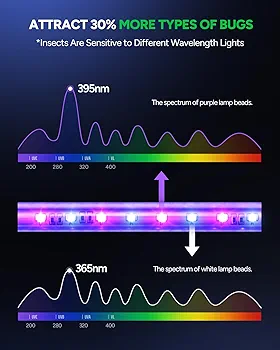 لامپ LED دوگانه با طول عمر ۱۰ ساله: جذب گسترده حشرات با نور ۳۶۵nm + ۳۹۵nm و مصرف انرژی بسیار پایین.
