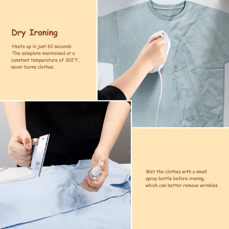 گرم شدن سریع: آماده استفاده در ۶۰ ثانیه با حرارت ثابت ۳۰۲°F برای رفع سریع چینوچروک لباسهای بستهبندی شده.