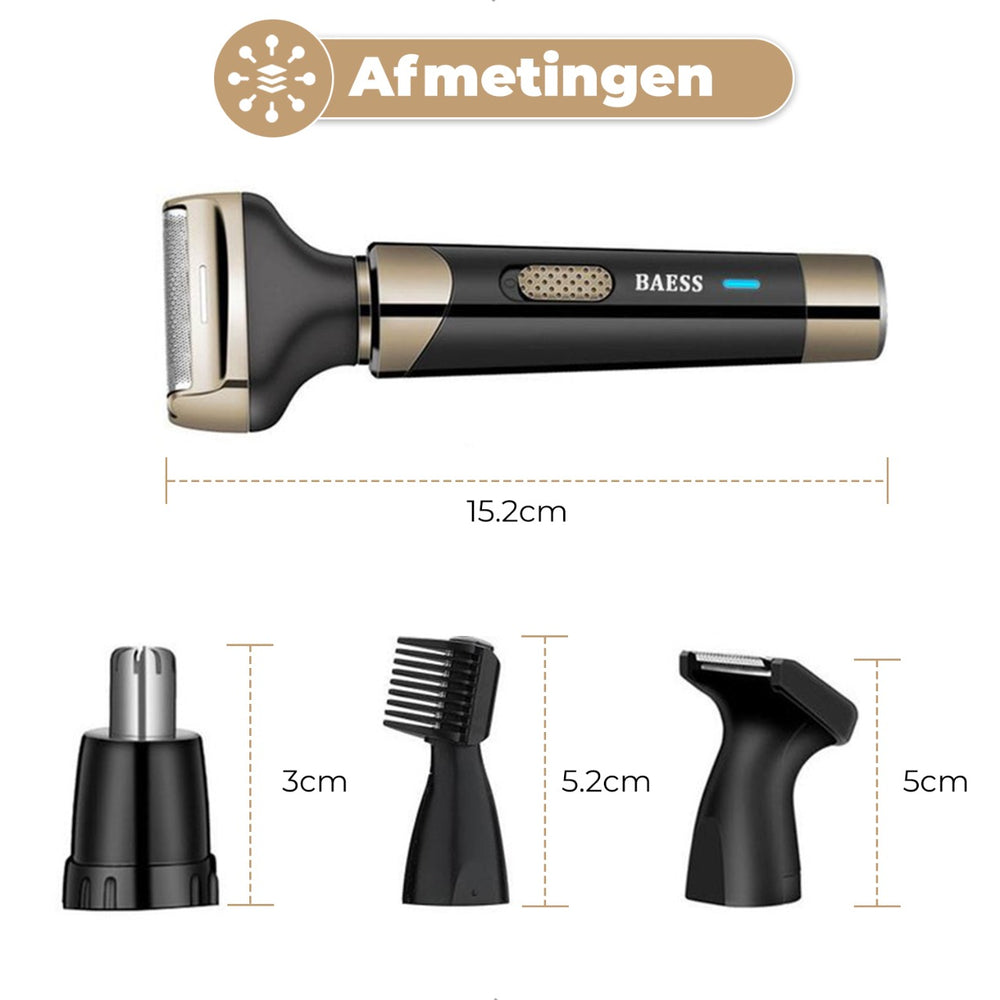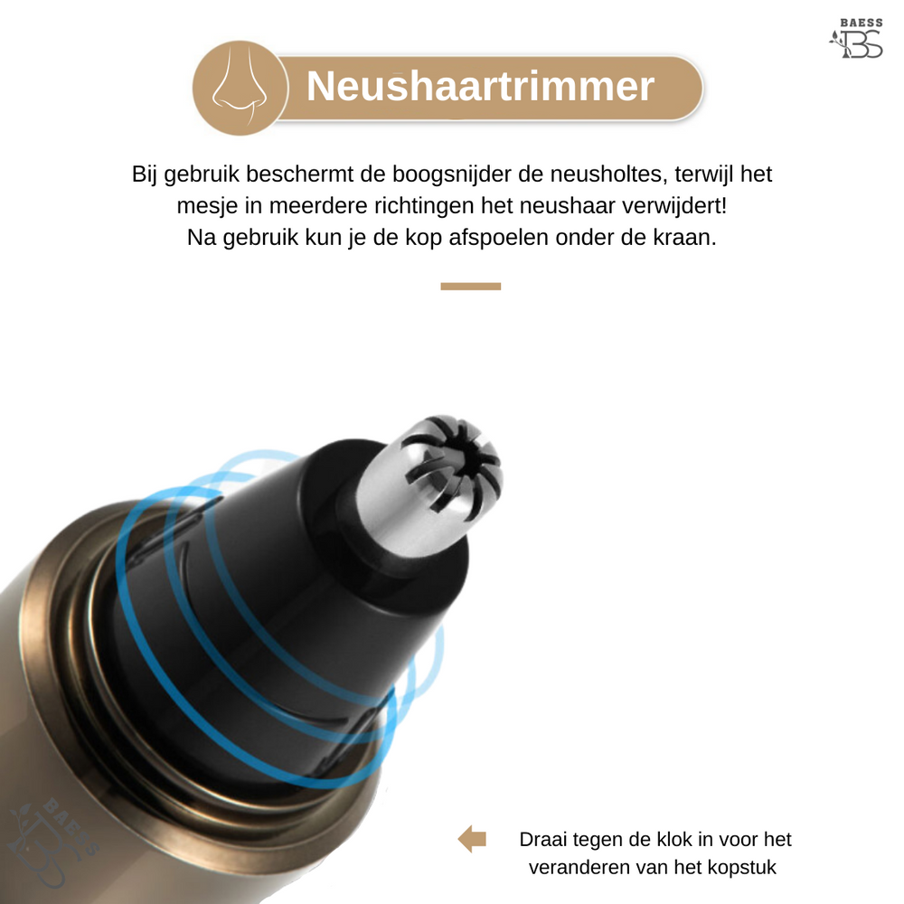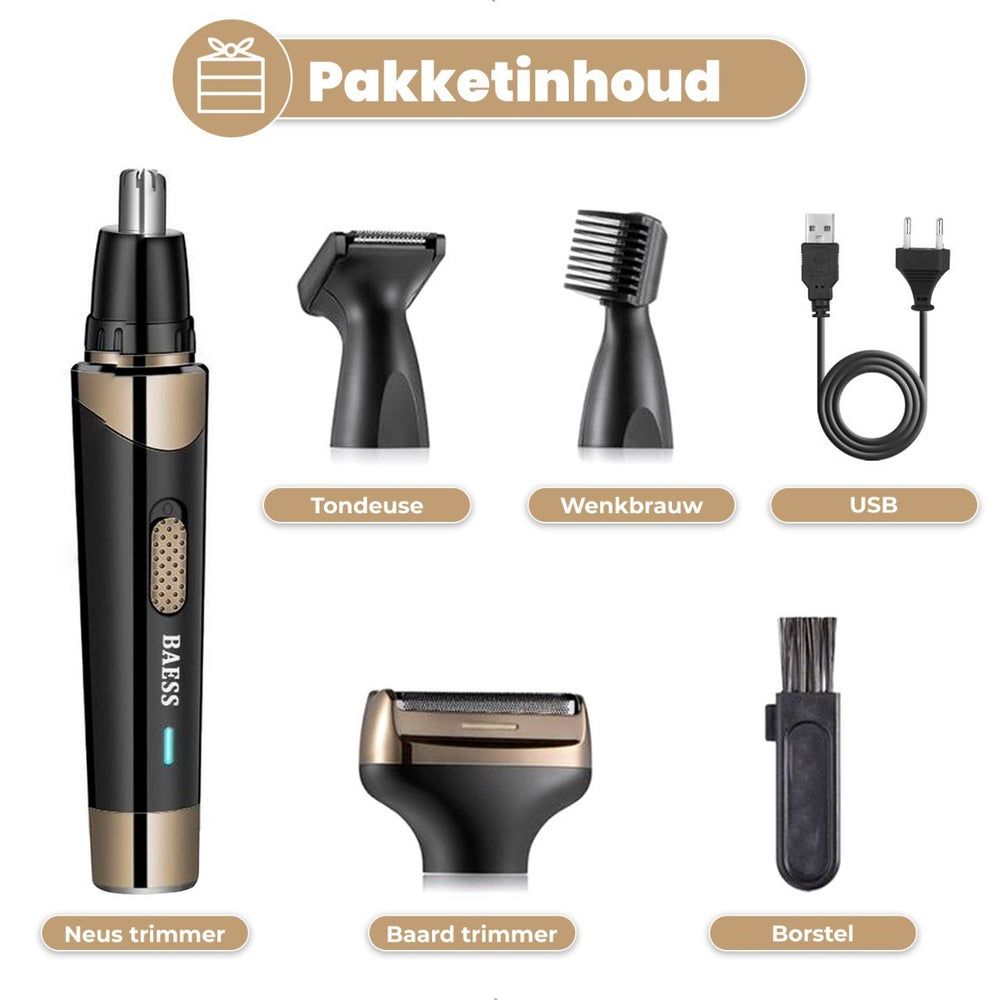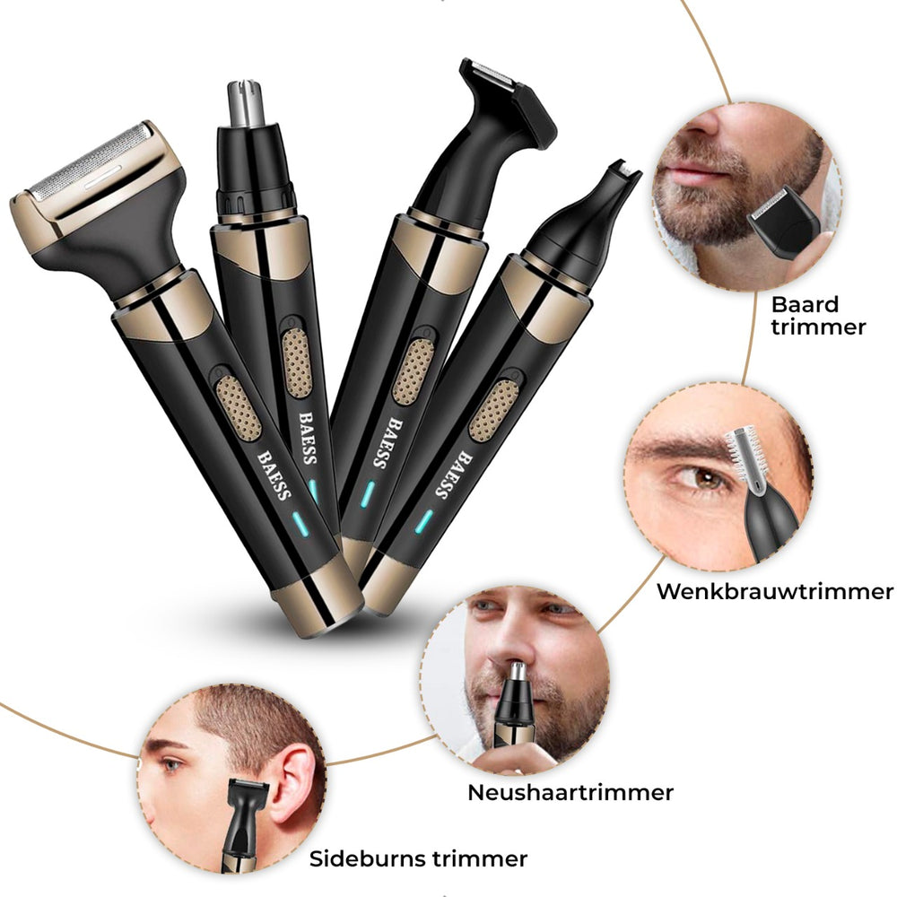 ست تریمmer بینی و گوش BAESS 4-in-1، بهترین انتخاب برای grooming حرفهای و سریع در خانه! این نهوشارترینر ۴ کاره (Neushaartrimmer) با طراحی هوشمند، تمام نیازهای اصلاح موهای زائد صورت را در یک دستگاه جمع کرده است.