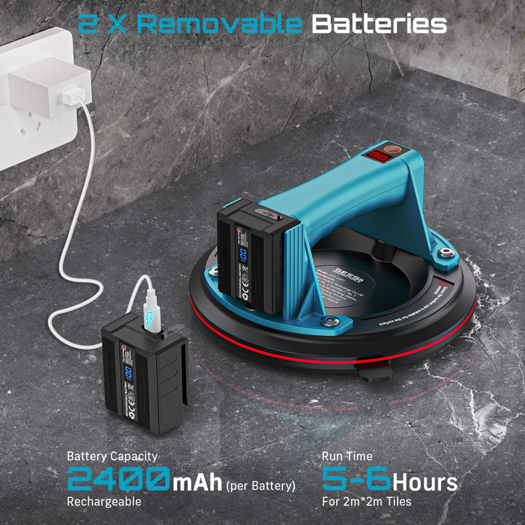 موتور مکش قوی، قدرت نگهداری تا ۲۷۰ کیلوگرم (۶۰۰ پوند) را فراهم میکند و طراحی ارگونومیک آن مانع از خستگی دست هنگام کار میشود. باتریهای قابل تعویض ۲۴۰۰ mAh دوام کاری بالایی دارند و با نمایشگر فشار دیجیتال، کاربر همیشه از وضعیت مکش مطلع است.