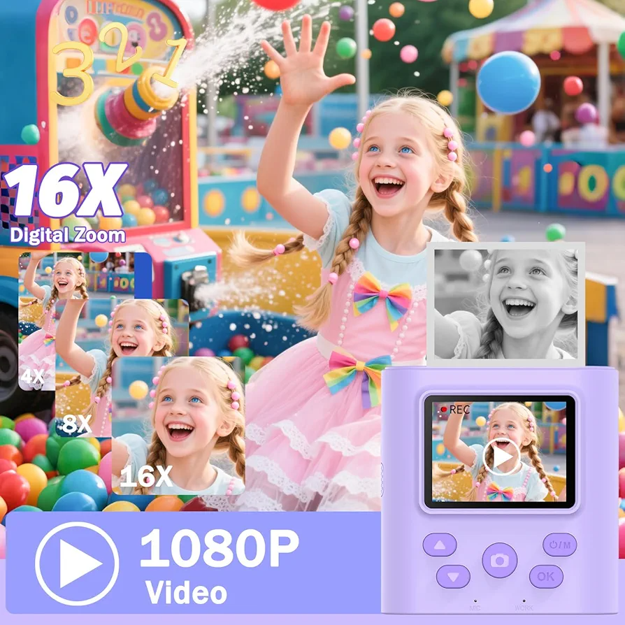 دوربین چاپ فوری کودک مدل Instant Print Camera یکی از جذابترین و خلاقانهترین گجتهای سرگرمی برای کودکان است که ترکیبی از عکاسی و چاپ سریع را در اختیار آنها قرار میدهد. این دوربین با بهرهگیری از فناوری چاپ حرارتی (Thermal Printing) بدون نیاز به جوهر، امکان چاپ فوری تصاویر را تنها در چند ثانیه فراهم میکند. همین ویژگی باعث شده تا هزینههای جانبی آن بسیار پایین بوده و گزینهای اقتصادی برای والدین محسوب شود.