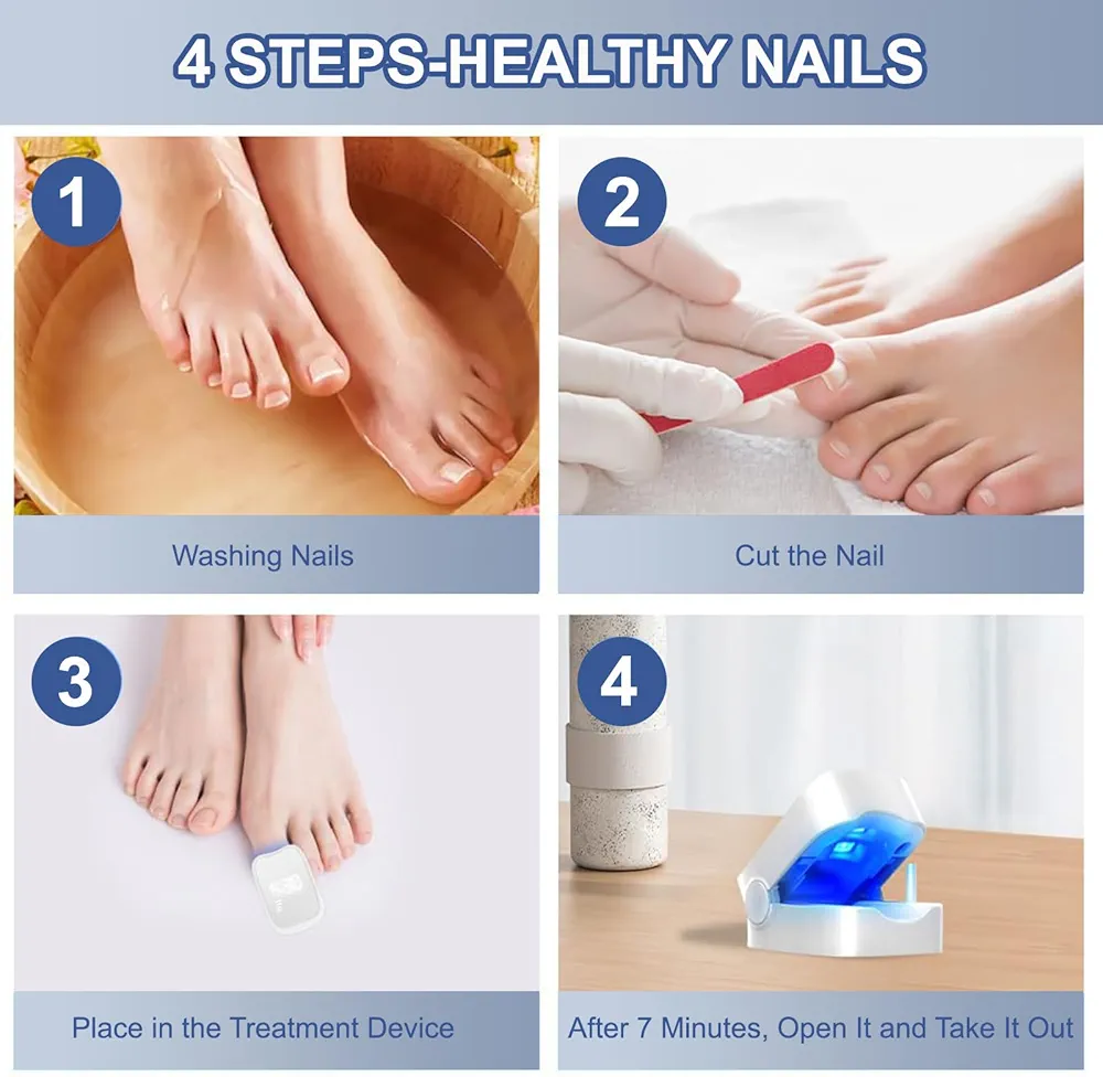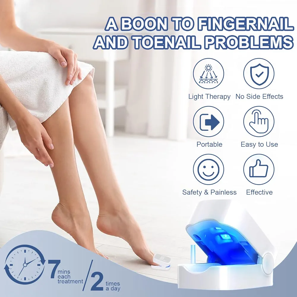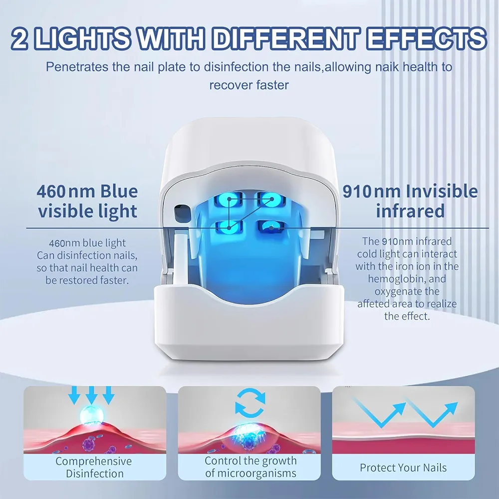 💡 فناوری نور سرد پیشرفته (Blue + Infrared Light) برای نفوذ به ناخن و هدفگیری قارچ.