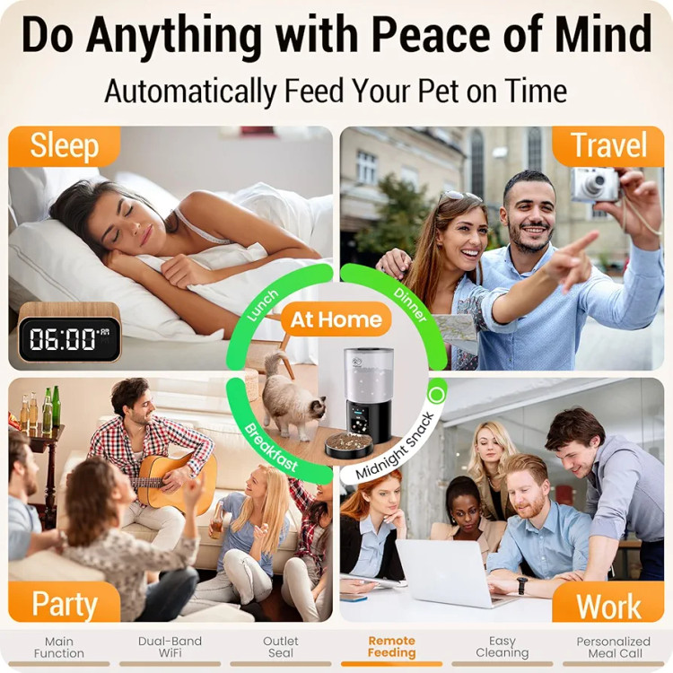 این فیدر همچنین دارای قابلیت ضبط پیام صوتی ۱۰ ثانیهای است که میتوانید صدای خود را برای غذا دادن به حیوان ضبط کنید تا در زمانهای غذا خوردن او را صدا کنید. � طراحی بدنه از مواد با کیفیت ABS بدون BPA و استیل ضد زنگ تضمین میکند که دستگاه محکم و طول عمر بالایی داشته باشد و قابل شستشو برای بهداشت کامل باشد.