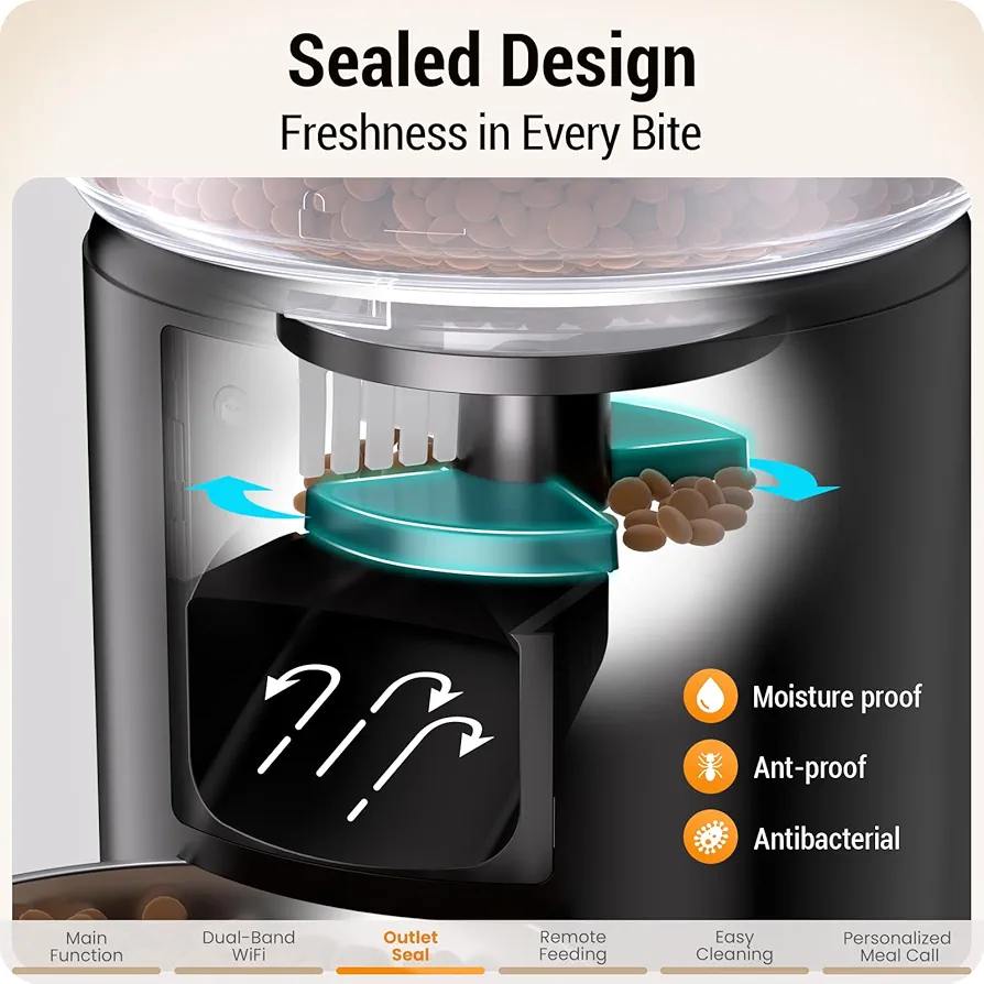 این فیدر همچنین دارای قابلیت ضبط پیام صوتی ۱۰ ثانیهای است که میتوانید صدای خود را برای غذا دادن به حیوان ضبط کنید تا در زمانهای غذا خوردن او را صدا کنید. � طراحی بدنه از مواد با کیفیت ABS بدون BPA و استیل ضد زنگ تضمین میکند که دستگاه محکم و طول عمر بالایی داشته باشد و قابل شستشو برای بهداشت کامل باشد.