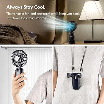 سری این پنکه تا ۹۰ درجه تغییر زاویه میدهد. این قابلیت به شما اجازه میدهد تا آن را روی میز کار قرار دهید یا با استفاده از بند همراه، آن را به گردن آویزان کنید. همچنین، پایه نگهدارنده این محصول به گونهای طراحی شده که به عنوان هولدر موبایل نیز عمل میکند؛ بنابراین میتوانید هنگام تماشای سریال یا تماس تصویری، از باد خنک لذت ببرید.