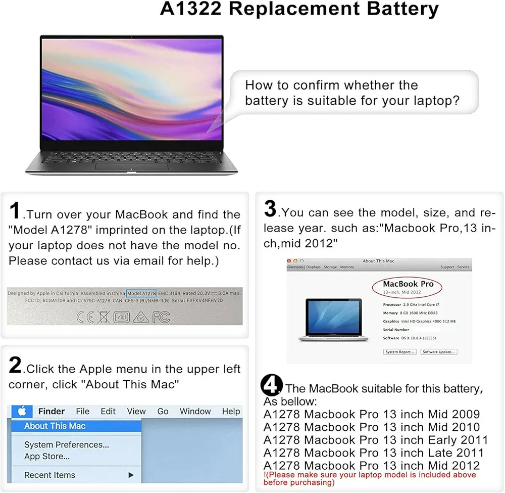 1.آیا باتری A1322 برای همه مکبوکهای 13 اینچ مناسب است؟