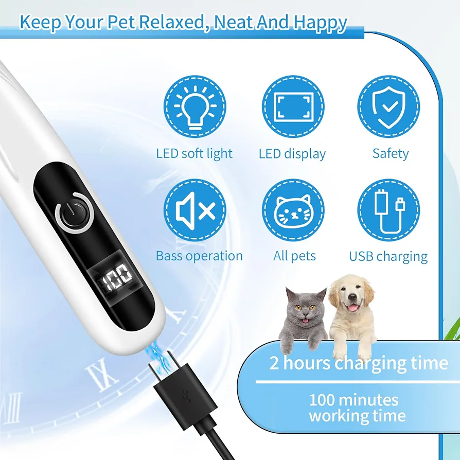 اگر به دنبال یک ماشین اصلاح حیوانات خانگی حرفهای و دقیق برای مرتبسازی نواحی حساس هستید، این ماشین اصلاح پنجه سگ و گربه با چراغ LED یک انتخاب هوشمندانه و کاربردی محسوب میشود. این دستگاه با طراحی باریک و ارگونومیک، به شما امکان میدهد موهای اضافی اطراف پنجه، گوش، چشم، صورت و نواحی حساس حیوان خانگی خود را با دقت بالا کوتاه کنید، بدون اینکه به پوست لطیف آن آسیبی وارد شود.